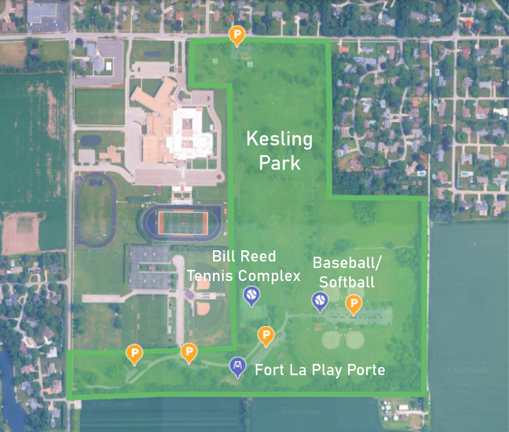 Kesling Park is home to multiple ball diamonds as well as tennis and pickleball courts and a 9-hole disc golf course